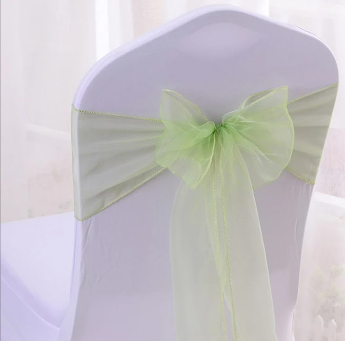 Le noeud de chaise en organza vert habillera vos tables d’évènements et apportera une touche de couleur douce à votre décoration.