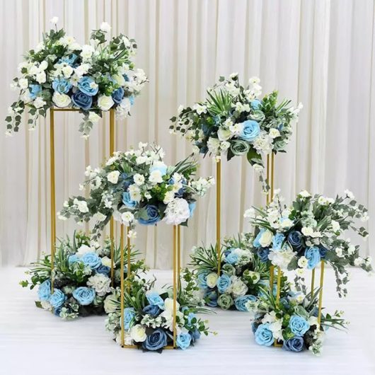 Les colonnes or rectangulaires seront parfaites pour votre décoration de table d’honneur ou encore votre allée d’honneur.